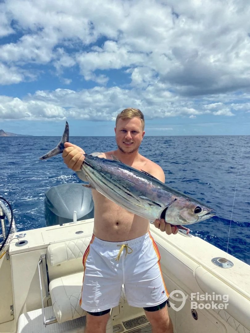 Epic double fish and snorkel charter with a great family. Spent an awesome five hours snorkeling two spots up the West Oahu coastline, while we stopped and fished at a few reefs, a wreck, and through some bird piles. We caught a multitude of bottom fish, some of which we kept in the baitwell, and were lucky enough to snag a couple nice sized Hawaiian Skip Jack Tuna! Fun day on the water for sure. The double it up if you have the chance!