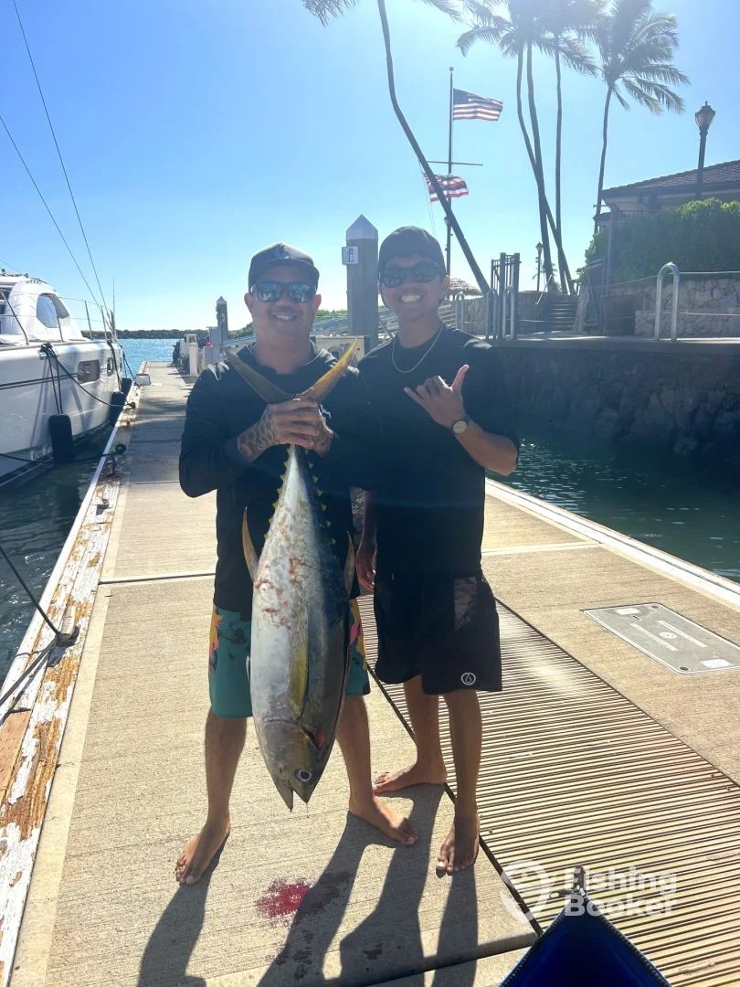 We started spring off with a bang! Beautiful Yellow Fin Tuna on the table for the family. Ending a midday snorkel this guy decided to gobble up a 9 inch skirted hawaiian speed lure.